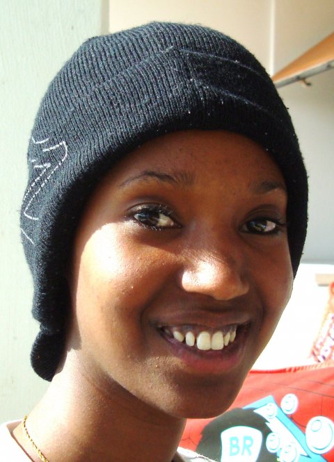Det bliver for varmt med den sorte hat, Tamam altid går med på hovedet, så den tager hun af.